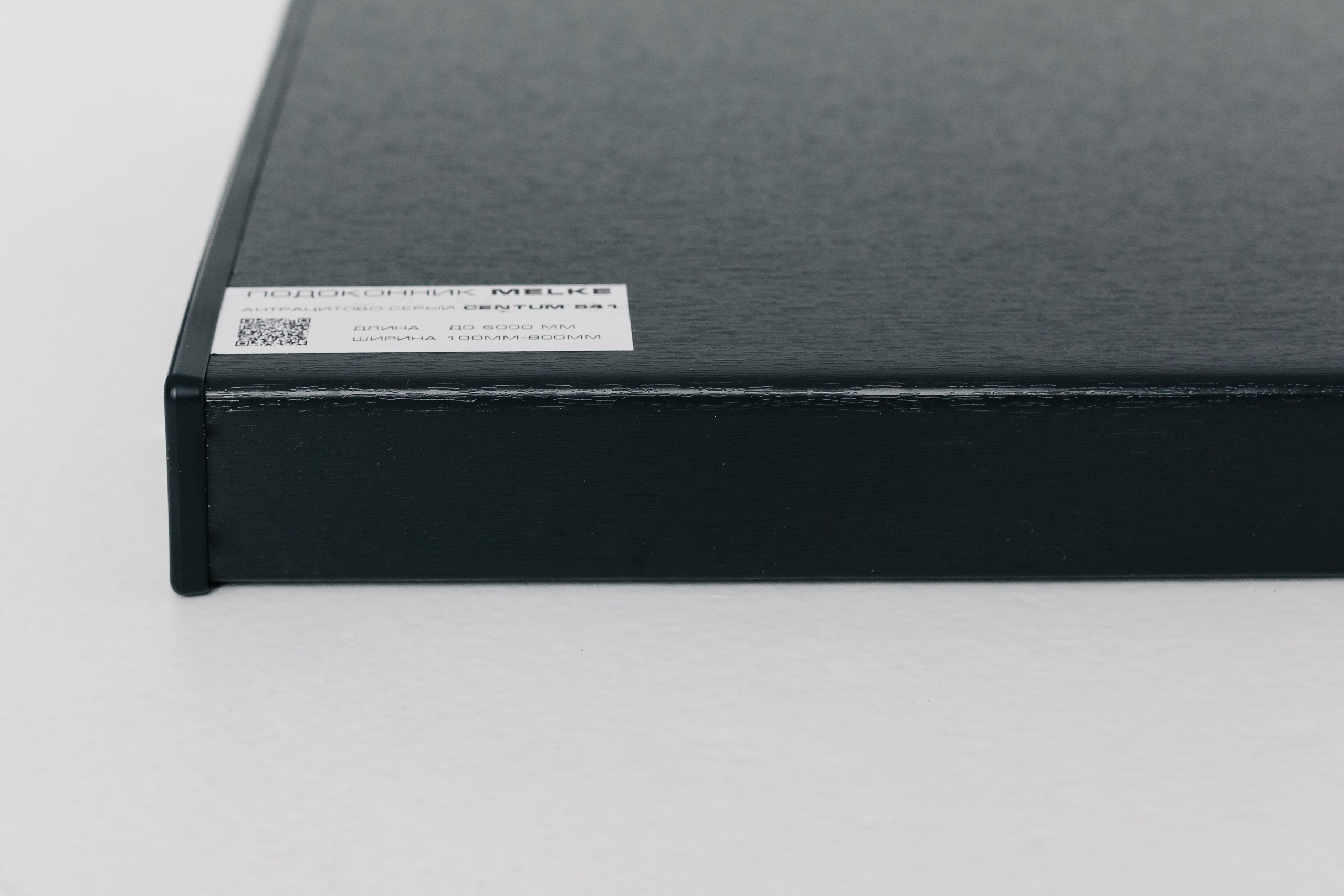 Особенностью подоконников «МЕЛКЕ» Антрацит является использование декоративной пленки, надежно приклеенной к основанию. Эта пленка имеет не только эстетическую функцию, создавая интересный и современный образ, но и обладает высокой степенью защиты от внешних воздействий, особенно от солнечных лучей.