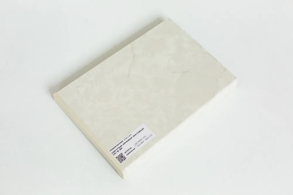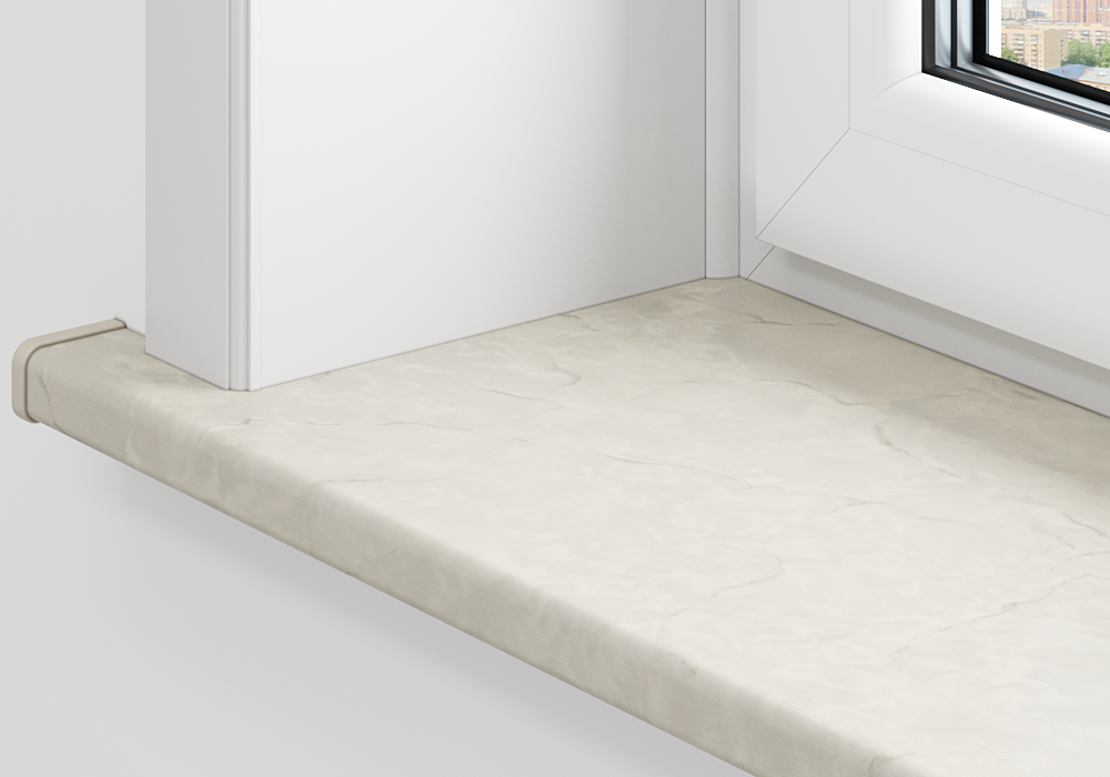 Немецкий подоконник Меллер «Светлый мрамор» выглядит подобно серому природному мрамору. Наибольшее сходство с натуральным камнем ему придает естественность красок и матовая поверхность – именно качество и детальность рисунка не позволит отличить подоконник от настоящего мрамора.