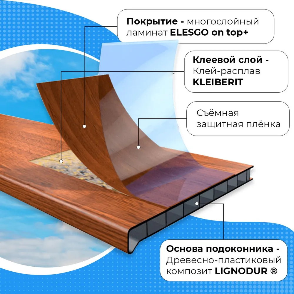 В основе белого глянцевого подоконника «Меллер» содержится древесно-полимерный композит «Lignodur», представляющий собой сочетание древесной муки и пластика. Благодаря уникальным свойствам данного материала подоконник отличается высокой прочностью, а его глянцевый вид создает эффект отражения и наполняет помещение теплым светом, создавая дополнительный уют и комфорт.