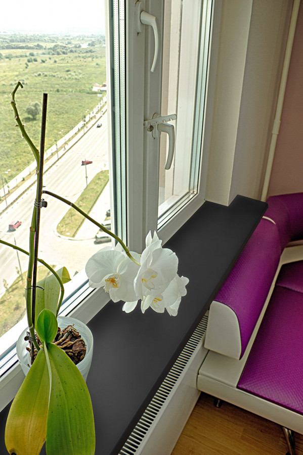 Необычный декор в ассортименте подоконников Moeller. Эксклюзивная новинка - Черный Сатин. Это абсолютно черный подоконник с идеально гладкой матовой поверхностью. Смотрится очень красиво и оригинально. Не оставит равнодушным даже самого требовательного к оформлению интерьера.
